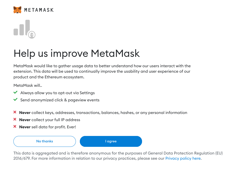 2. Accept or decline the following data privacy notice - your choice does not affect how the app functions