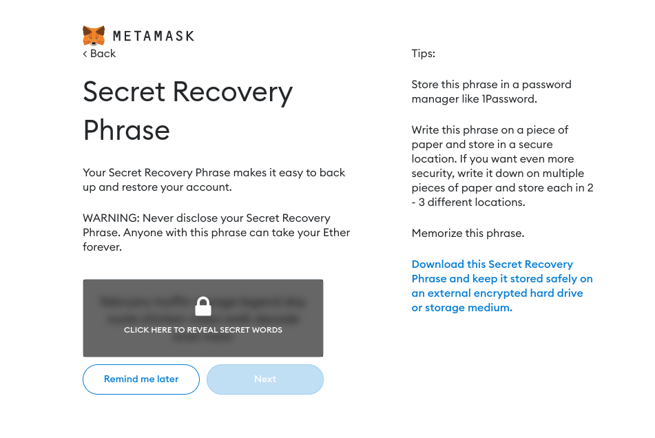 Once you've copied the words down, click 'Next' and confirm the phrase on the next page by selecting the words in the correct order.