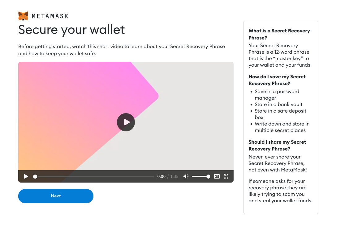 There are a bunch of web3 wallets to chose from but the easiest and most common place to start is Metamask - while it is not the best, it has been the defacto wallet for quite a while and as of writing, is probably the best supported wallet in Web3.