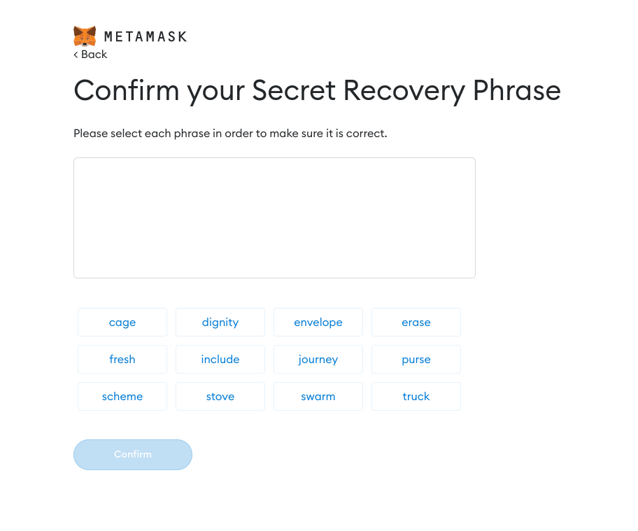 Click 'Confirm' and you should be good to go! You can always click 'Back' if you need to check the words again.