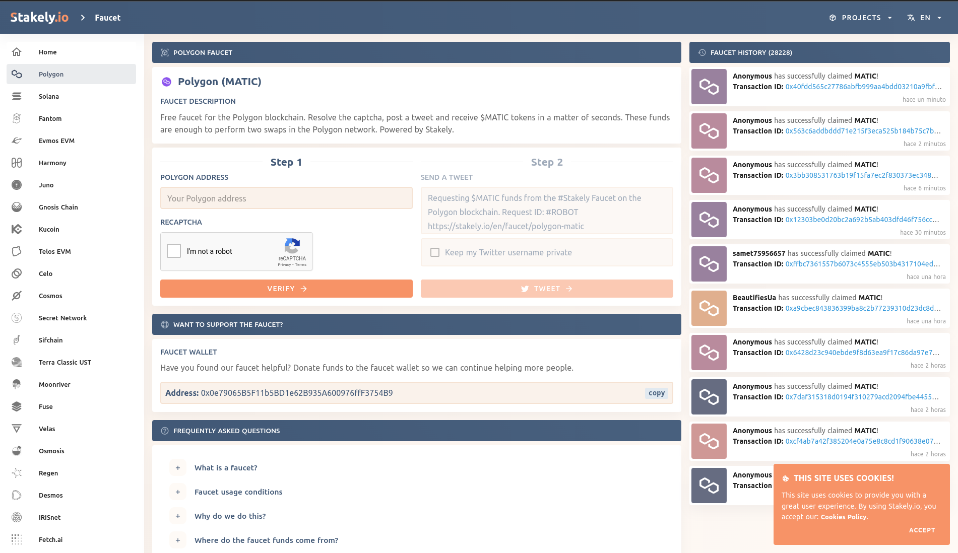 1. For MATIC tokens on Polygon, head to the Stakely.io Polygon Faucet