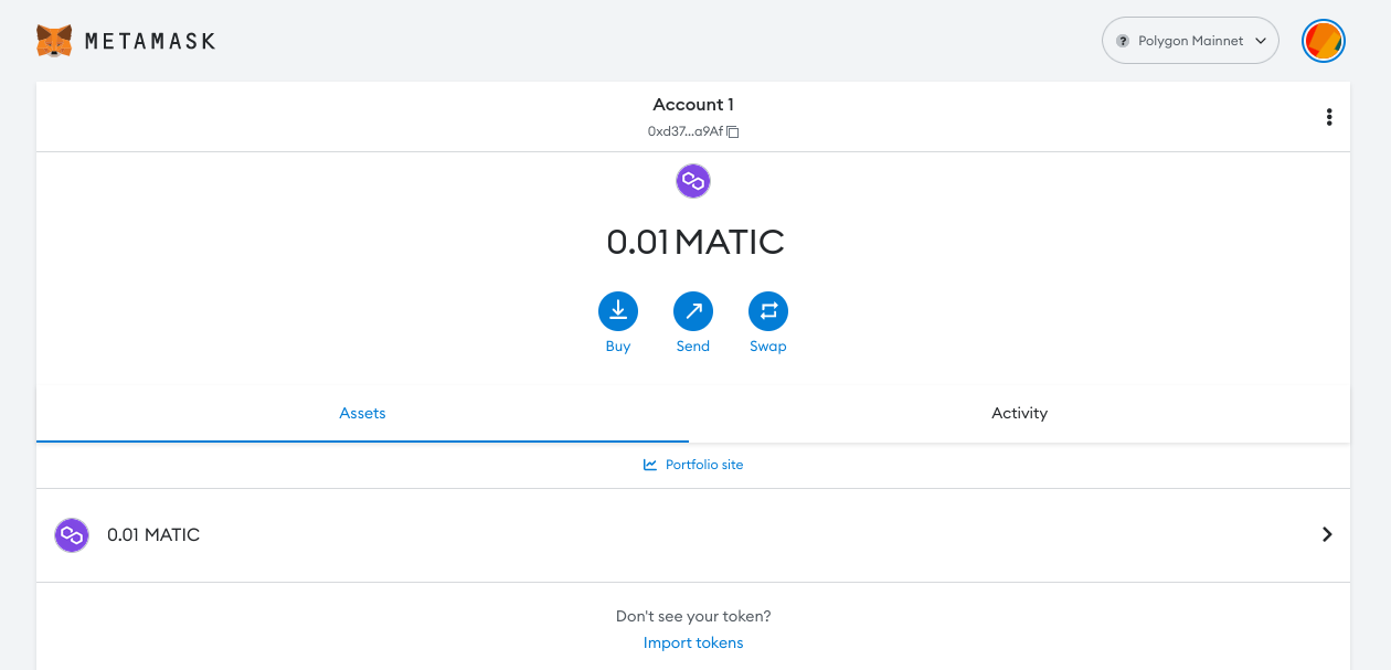 Congratulations, you now have some Matic and could head over to The Onboarding Game and earn your first NFT.
